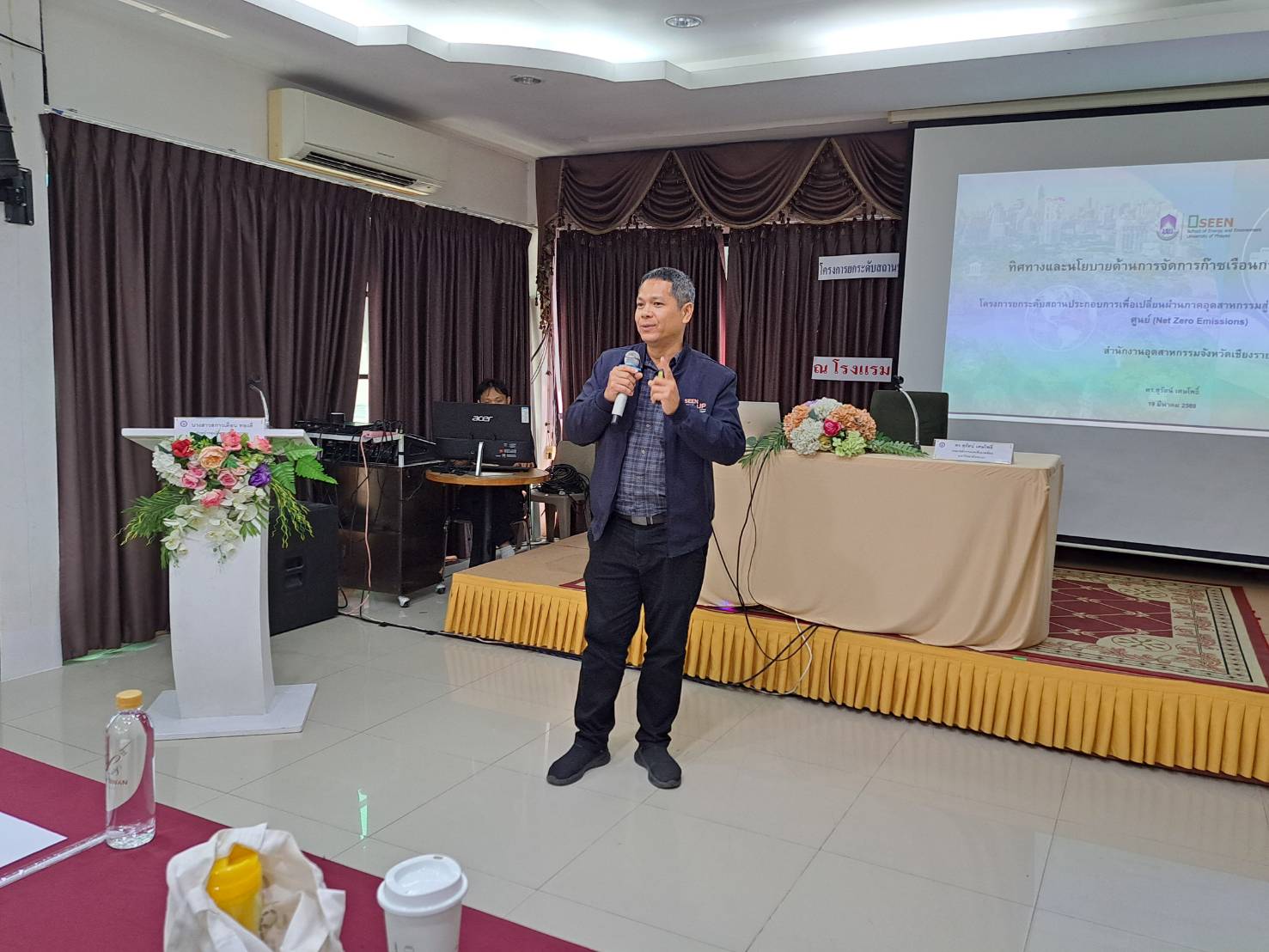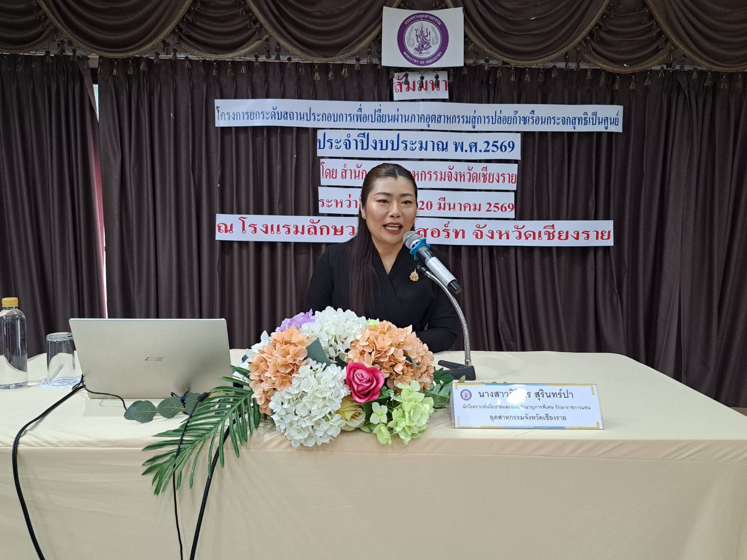 วันที่ 19 มีนาคม 2569 เวลา 09.00 น. สำนักงานอุตสาหกรรมจังหวัดเชียงราย จัดสัมมนาโครงการยกระดับสถานประกอบการเพื่อเปลี่ยนผ่านภาคอุตสาหกรรมสู่การปล่อยก๊าซเรือนกระจกสุทธิเป็นศูนย์ ประจำปีงบประมาณ พ.ศ. 2569 โดยมี นางสาวศิริพร สุรินทร์ปานักวิเคราะห์นโยบายและแผนชำนาญการพิเศษ รักษาราชการแทน อุตสาหกรรมจังหวัดเชียงราย เป็นประธาน และนางสาวสกาวเดือน ทองดี หัวหน้ากลุ่มโรงงานอุตสาหกรรม เป็นผู้กล่าวรายงาน ทั้งนี้ มีผู้ประกอบกิจการโรงงานในพื้นที่จังหวัดเชียงราย เข้าร่วมการสัมมนา จำนวน 25 ราย ณ โรงแรมลักษณวรรณรีสอร์ท จังหวัดเชียงราย